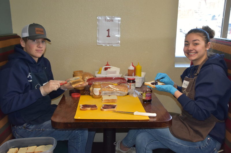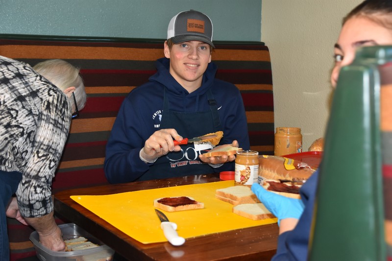 Great teamwork makes the PB & J Sandwich making go smoother ...
