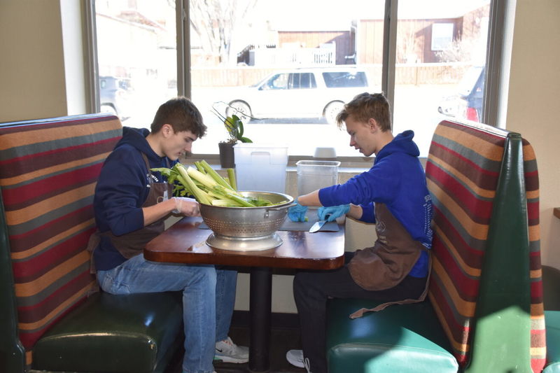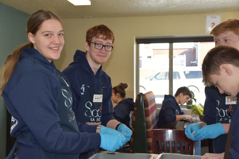 Jordan, Elena, Kole and Ken helping prep food for soup!
